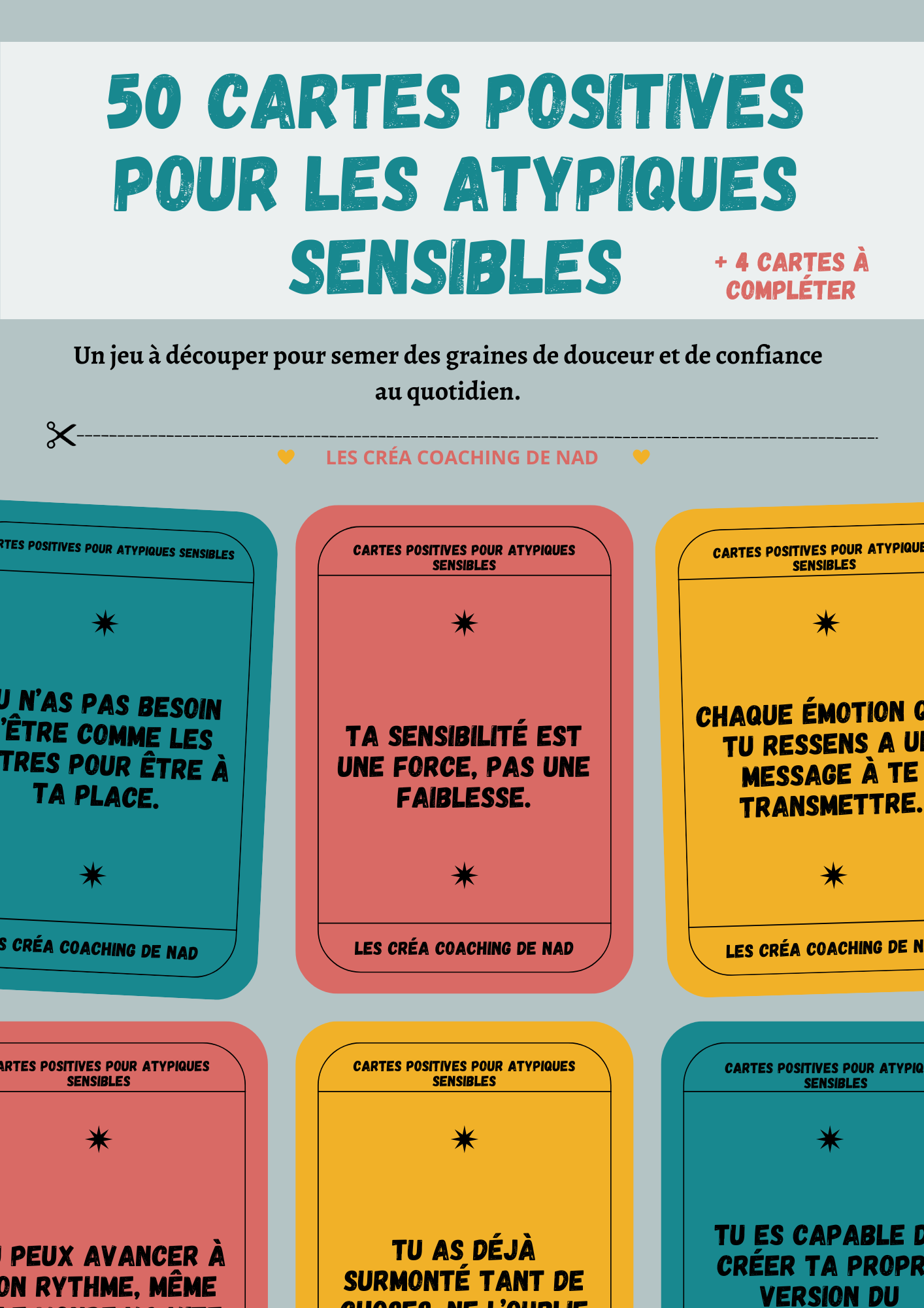 J'ai créé "Les Créa Coaching de Nad EI" pour accompagner les personnes submergées par leurs émotions, Hypersensibles et/ou neuro-atypiques de tous Âges à s'accepter, apaiser leurs relations (à eux-mêmes, aux autres) et développer leur confiance en eux pour une vie épanouie.