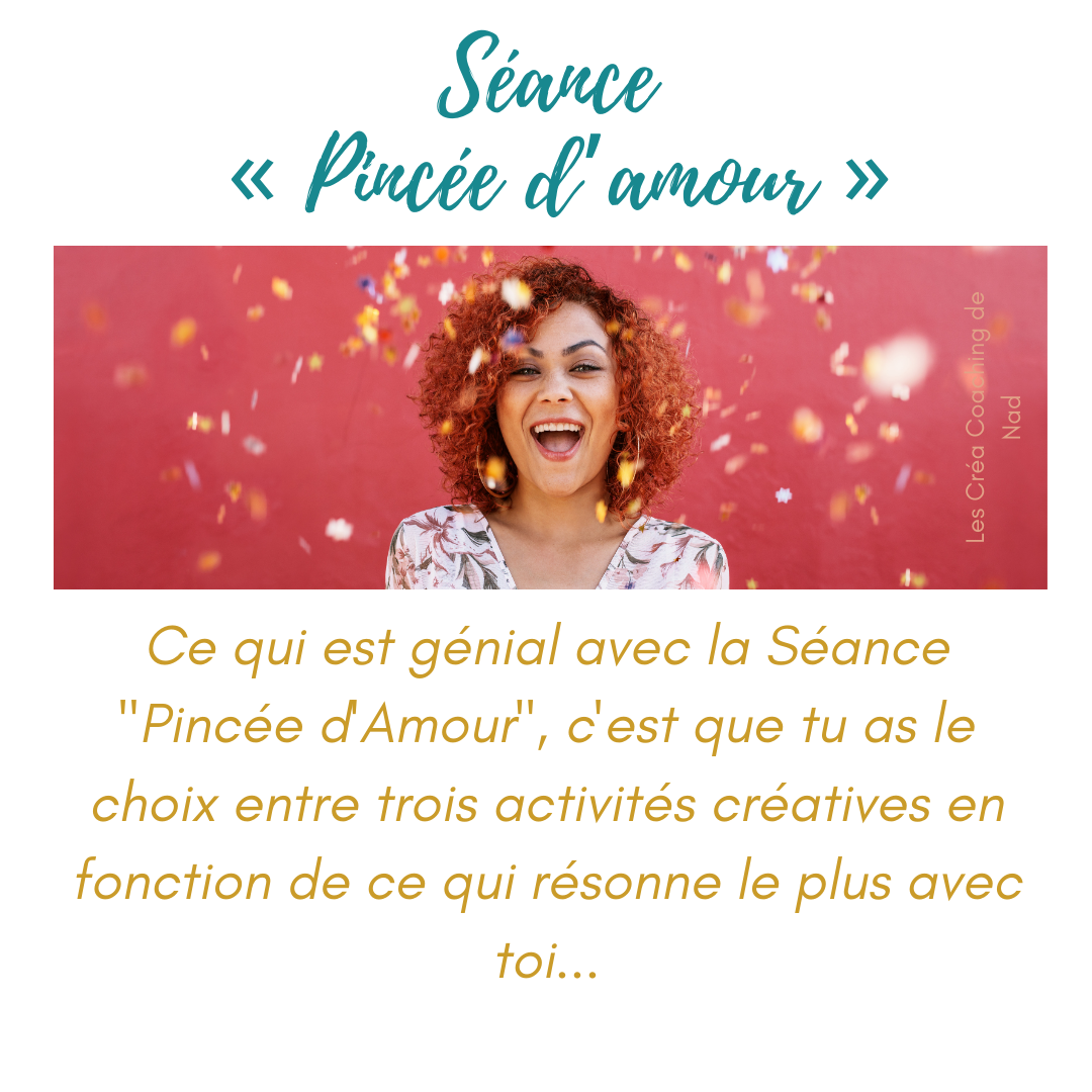 L'une des choses cool avec la Séance "Pincée d'Amour", c'est que tu as le choix, après le tirage de cartes Oracles, entre 3 activités créatives que je te propose en dessous en fonction de ce qui résonne le plus avec toi.